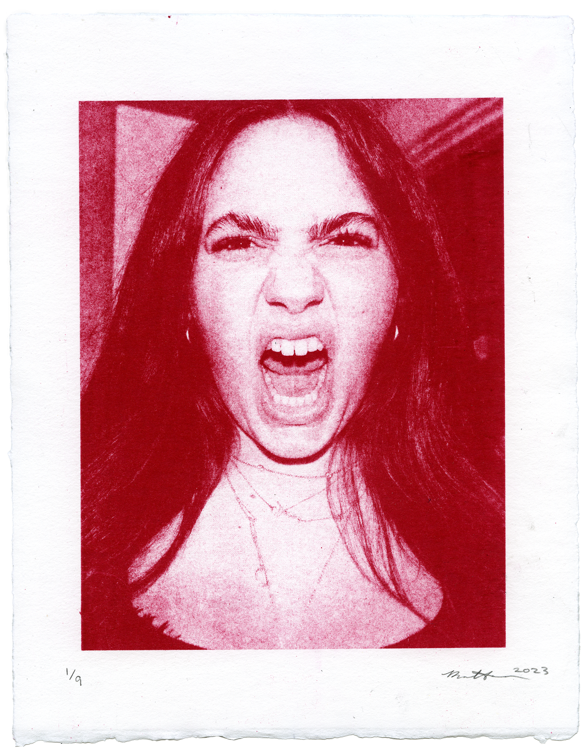 Plate lithograph prints from a digital photo, edition of nine prints, magenta ink; 8x10"